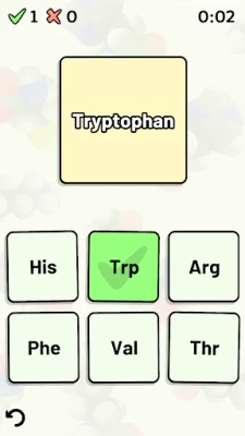 Test and improve your knowledge of the 20 standard amino acids using this app's customizable quizzes.