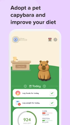 • Grow with Your Virtual Pet: Every healthy decision helps Capy thrive. Whether you’re building a calorie deficit or keeping your food diary consistent, your capybara grows as you do.