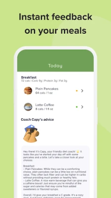 Meet Capy, Your diet best friend! Capy Diet is a calorie tracker pet that helps you build a better relationship with food. Simply log your meals, and coach Capy will give you healthy and personalized food suggestions.